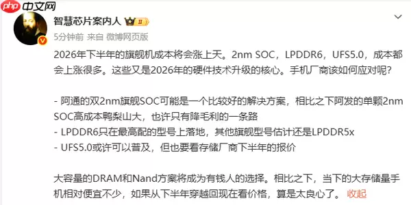 近日,行业观察机构CNMO从数码博主“智慧心片案内人”处获悉一则关键信息:预计在2026年下半年,旗舰级智能手机的整机制造成本将迎来一轮显著上涨。这一趋势的核心驱动力,来自于构成下一代旗舰机型硬件基石的关键元器件成本大幅上扬。