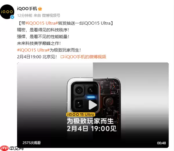 1月26日,我们从CNMO获悉,iQOO手机官方已正式确认,旗下备受期待的新旗舰iQOO 15 Ultra,定档于2月4日晚19点的新品发布会,届时将重磅亮相。