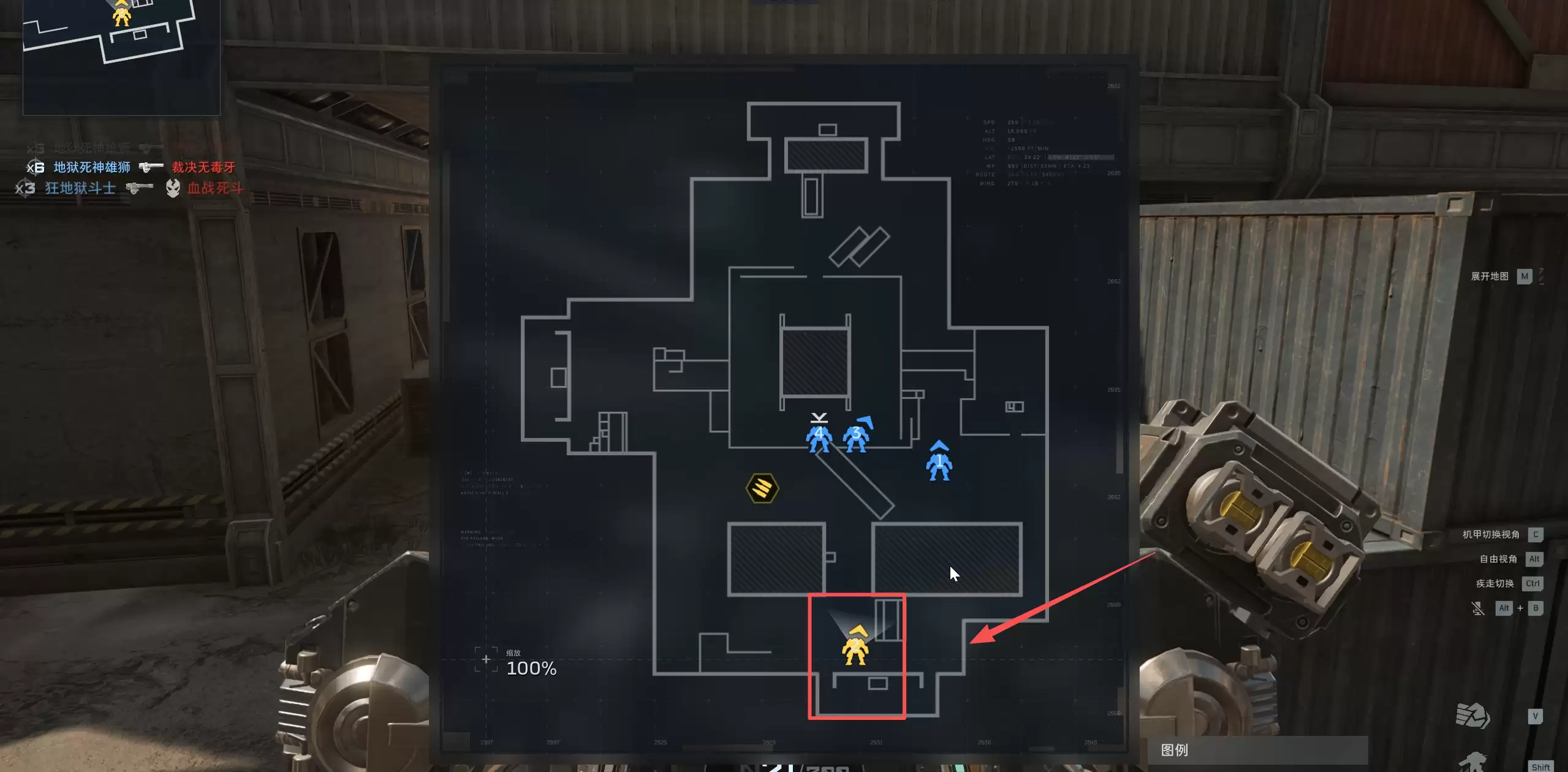 注意,上面台子上也会刷新敌人,记得及时悬浮起飞使用冲锋枪完成淘汰,防止被集火。