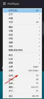 在其下拉菜单中,找到并选择“选项”条目,或者直接按下快捷键 F5。这将打开PotPlayer的核心设置面板,所有关于播放与显示的调整都在这里进行。