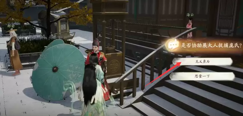 “江湖悬赏”任务的触发与完成,都紧密围绕着在赵王府下院找到的庞氏,核心在于按部就班地追踪与抉择。