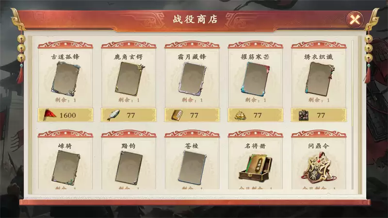 奖励:青梅可以在青梅商店中兑换名将册、问鼎令、天命令等奖励,相当于用兵力换挑战机会(100兵力=100银两),再获取青梅兑换奖励。