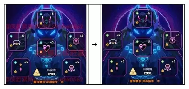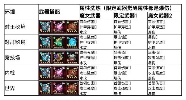 ps:除了腰带、魔角是固定属性(爆伤,爆伤+水攻)的,其余位置都可以根据环境改变属性