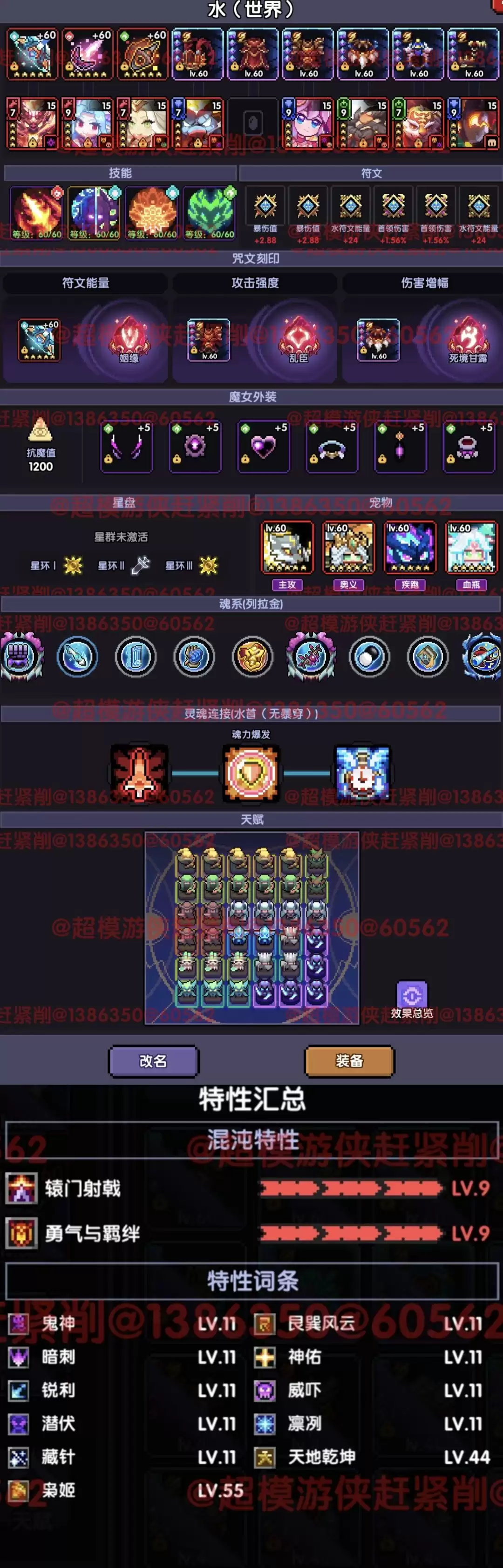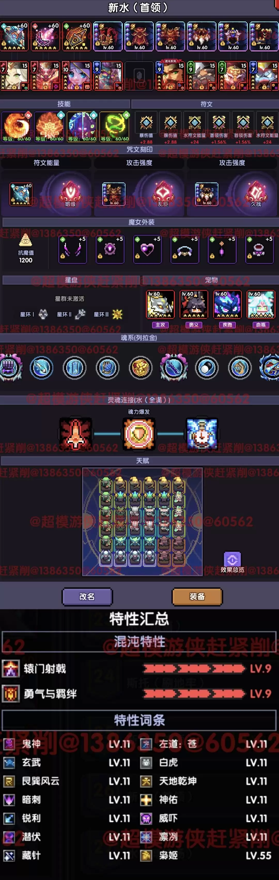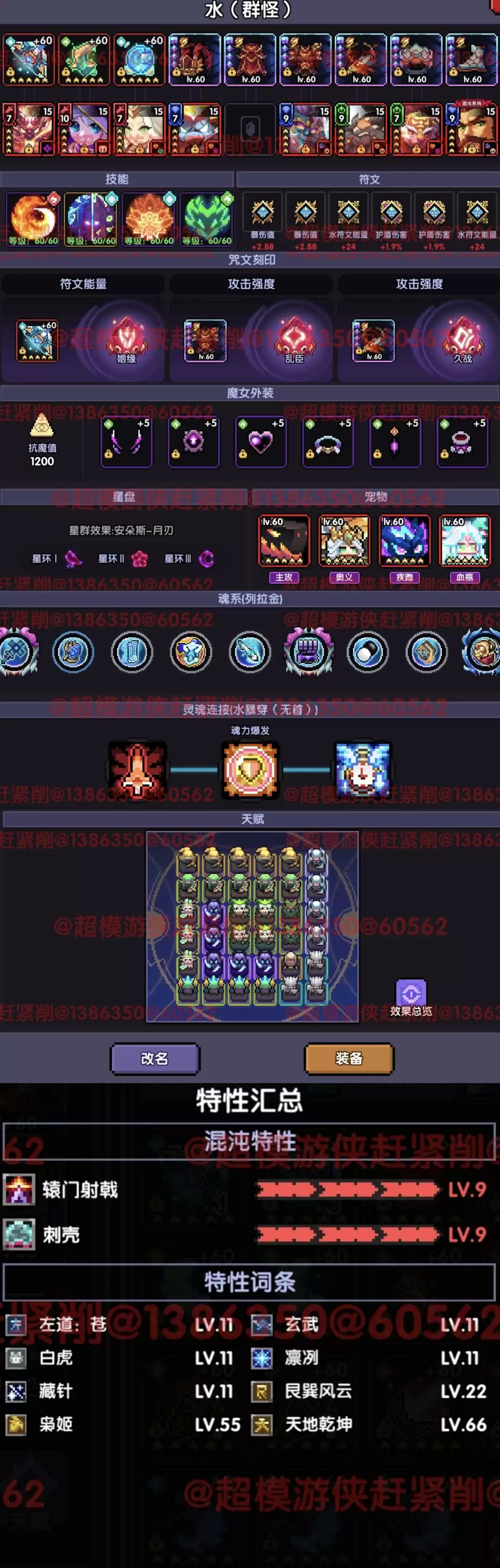 ps:装备选择、混沌暗金词条都要根据场景来切换。“枭姬”55级即可。在刷词条时,优先把词条凑齐,再去把“枭姬”等级拉满,剩下再去不补“天地乾坤”的词条。