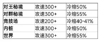 1、面板要求:攻速300+,冷缩55%(小队启迪)