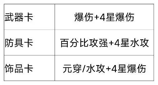 ps:饰品卡,只有“传说勇者-祈”需要“水攻”主属性,如果没有“水攻”祈可以换成“元穿”祈,只是弱一点而已