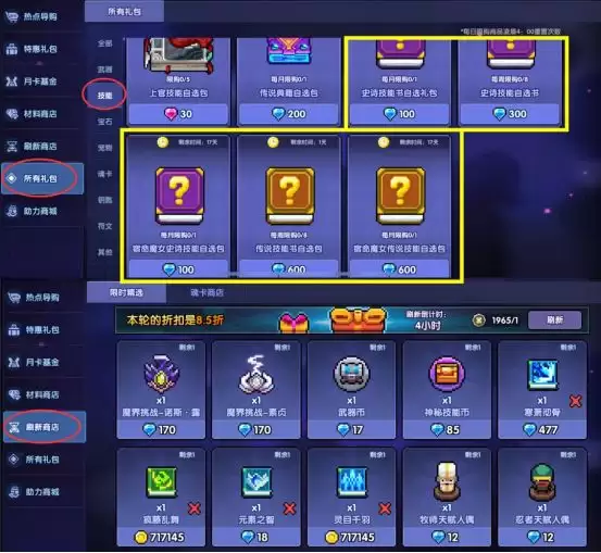 ③【商城】内购买:用钻石或者金币购买,在开荒期的推荐优先级不高。