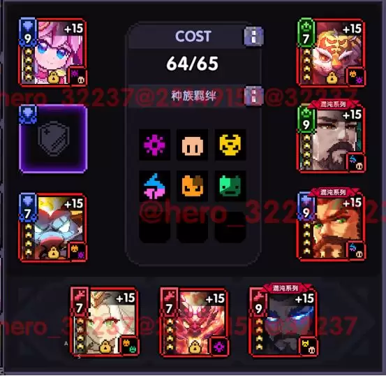 中间黄圈是魂卡的种族,凑齐不同数量可以获得额外的加成效果。