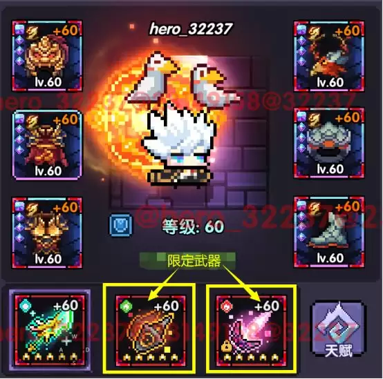 限定武器装在背包中的第二、三格,根据不同的场景携带不同的限定武器。限定武器会给自身带来大量的属性加成。
