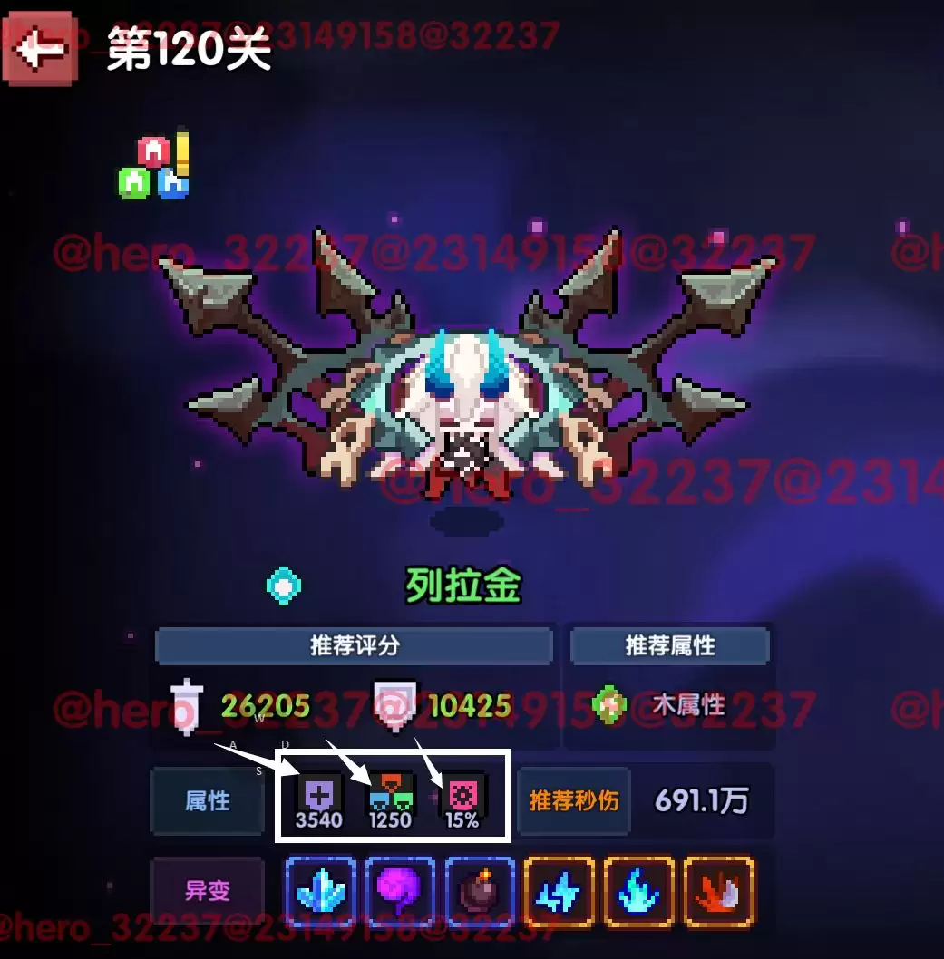 我们可以看到白框内的3个数值,分别对应我们需要达到的条件,护甲穿透需打到3540,元素穿透需要达到1250,暴击率达到115%。