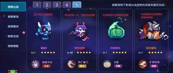 游戏里我们有4个宠物位置,分别是主攻,奥义,疾跑,血瓶。