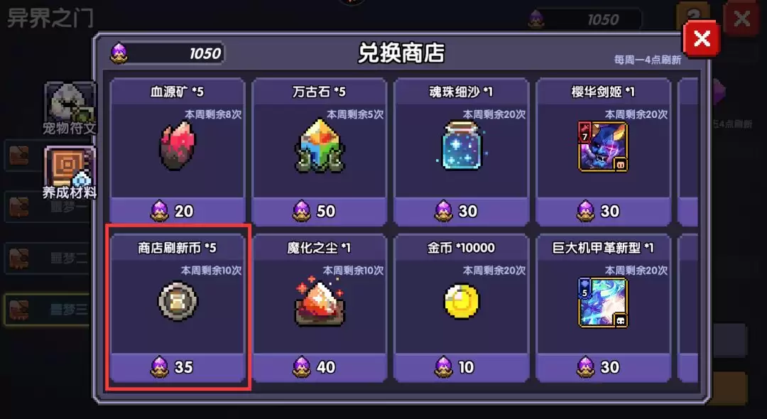 公会的贡献商店每周也有五十个