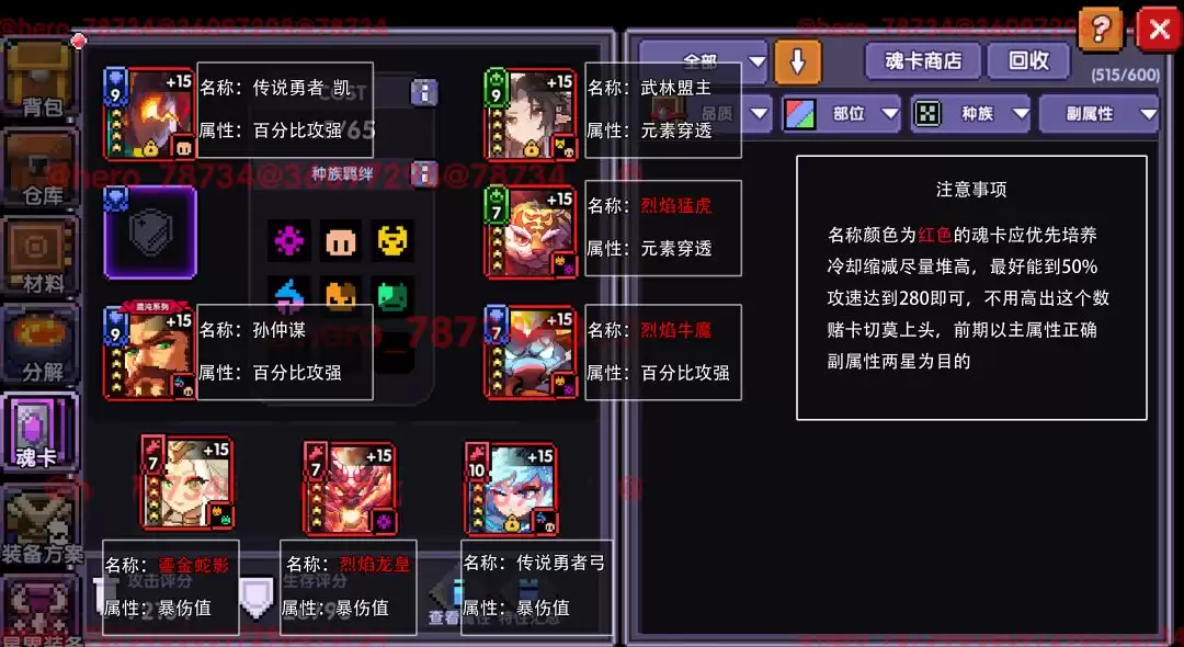 里面包含了武器/魂卡/装备/铭刻石