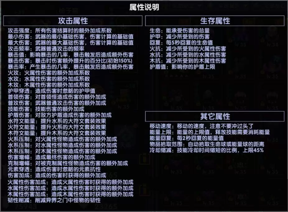 上图为游戏里各项属性的基本说明在查阅攻略前,建议各位萌新玩家先过一遍