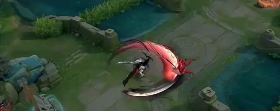 一技能蓄力解除控制时,李信周身魔气爆发,移动路径上会留下血色轨迹,突显其狂野不羁的战斗风格。二技能挥舞时,刀光呈现暗红色弧状,命中目标后伴有墨色飞溅效果,极具张力。