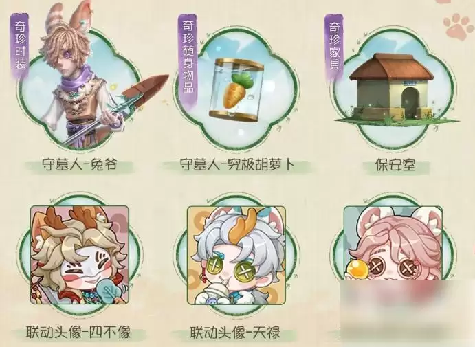 本次联动的时装奖励包括“守墓人-兔爷”奇珍时装,还有“守墓人-终极胡萝卜”奇珍随身物品。此外,保安家具、个人动作、头像、线索以及碎片等物资也一应俱全。当玩家累计获取金币达到指定数量时,还能升级特色鹿人店,解锁更多派遣地点和角色。