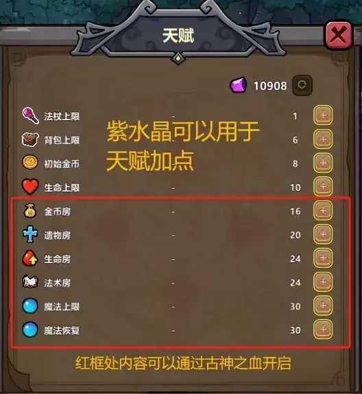 目前普遍房间分别为:法术房、金币房、遗物房、血上限房、加工房、商店。
