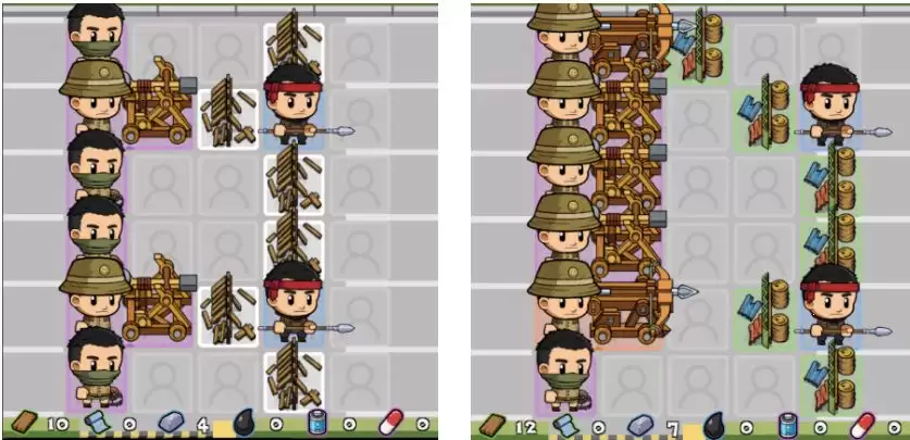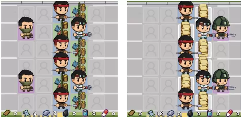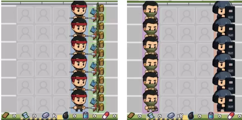 这套阵容主要消耗布料。如果您的布料资源较为充裕(请注意,每部署两名士兵需要消耗8点布料),不妨考虑这个方案。通过合理摆放两个“橙色士兵”,通常可以轻松应对100关左右的挑战,尤其是在面对半感染者时效果更为显著。