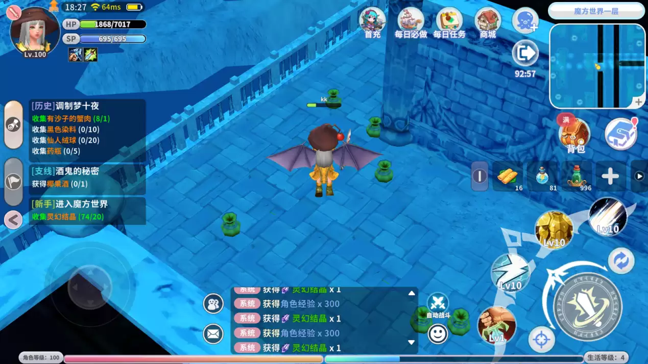 魔方世界的核心奖励包括:幻灵宝箱、迷之宝箱、四种属性宝石、1级赤晶石、纳特符石、精炼石、烈焰石、烽焰石、火药石、玛瑙石、寒玉、月之心、仙灵石、55级/65级宠物箱及对应解封材料。