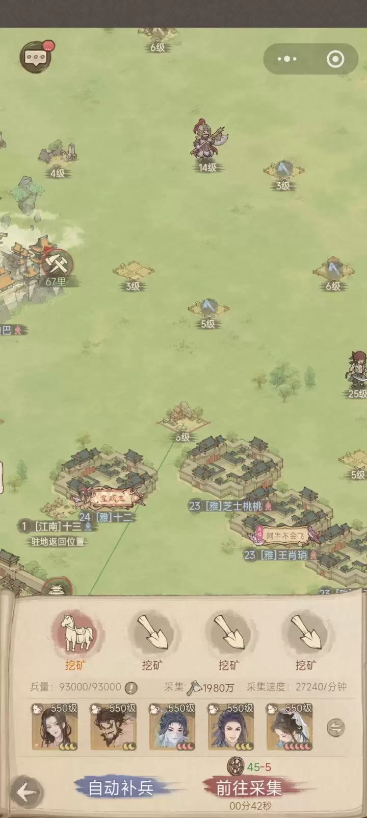 ③ 采集戎车记得配置4个同职业僚属,然后1234车都得升级,最好能一次性收满6级金矿的所有资源。这样只要一个时间点上线就行。车等级太低。2个小时上线一次肯定会漏掉的。忘记了还会丢掉箱子。