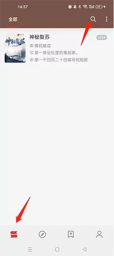 打开“开源阅读”APP,点击底部导航栏的“书架”选项。进入书架页面后,你会在顶部或显眼位置看到“搜索”图标,点击它即可进入搜索主界面。