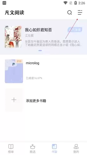 进入书架页面后,点击页面中的“添加”或“+”功能按钮。