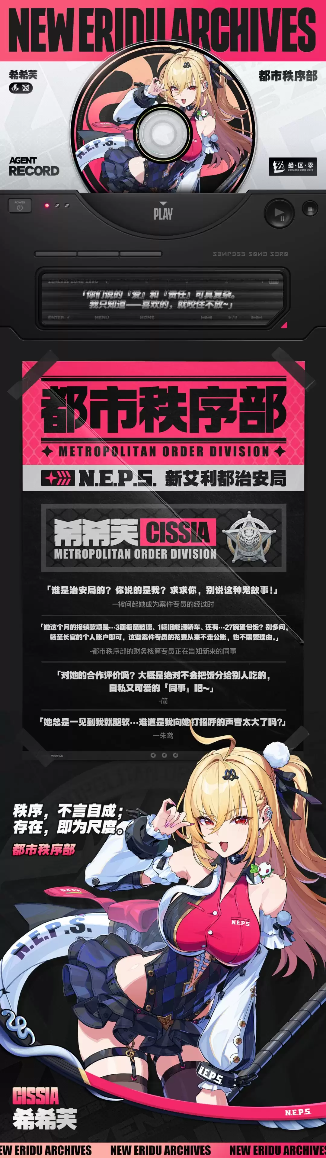 希希芙在游戏中定位为S级电属性强攻角色,隶属于都市治安分局阵营。其出色的输出能力将显著提升电系队伍的整体强度,特别适合需要高爆发输出的战斗场景。