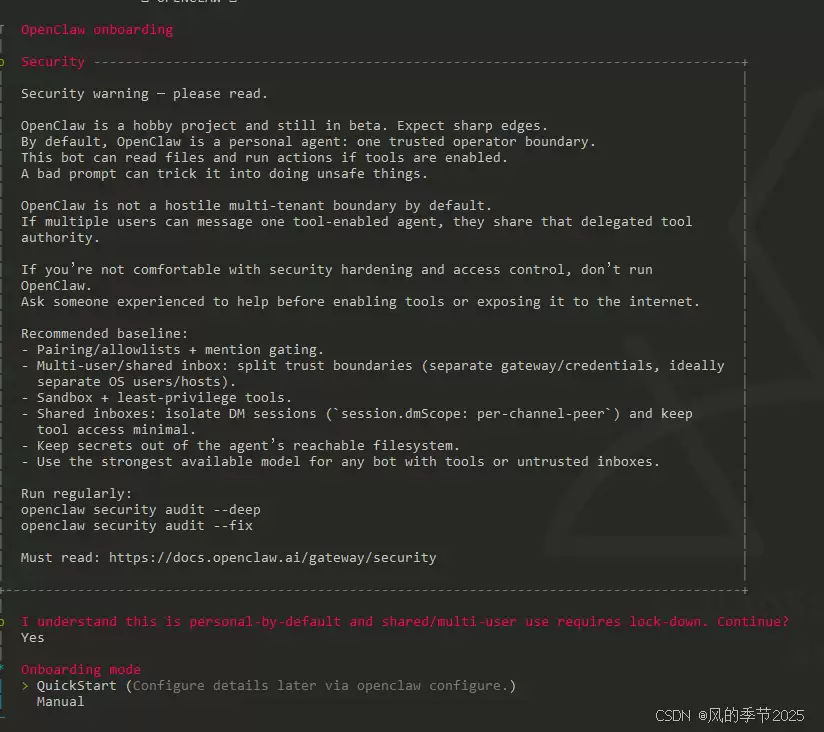 1. 系统安全提示确认:输入 "Yes" 授权继续配置