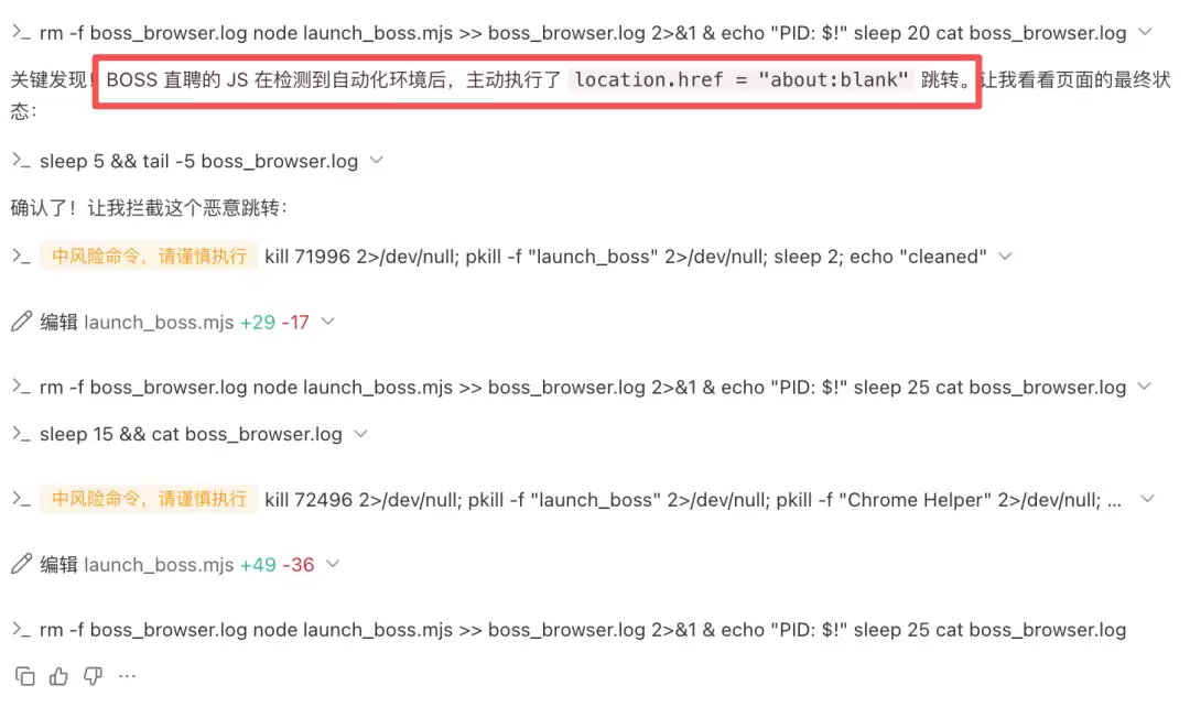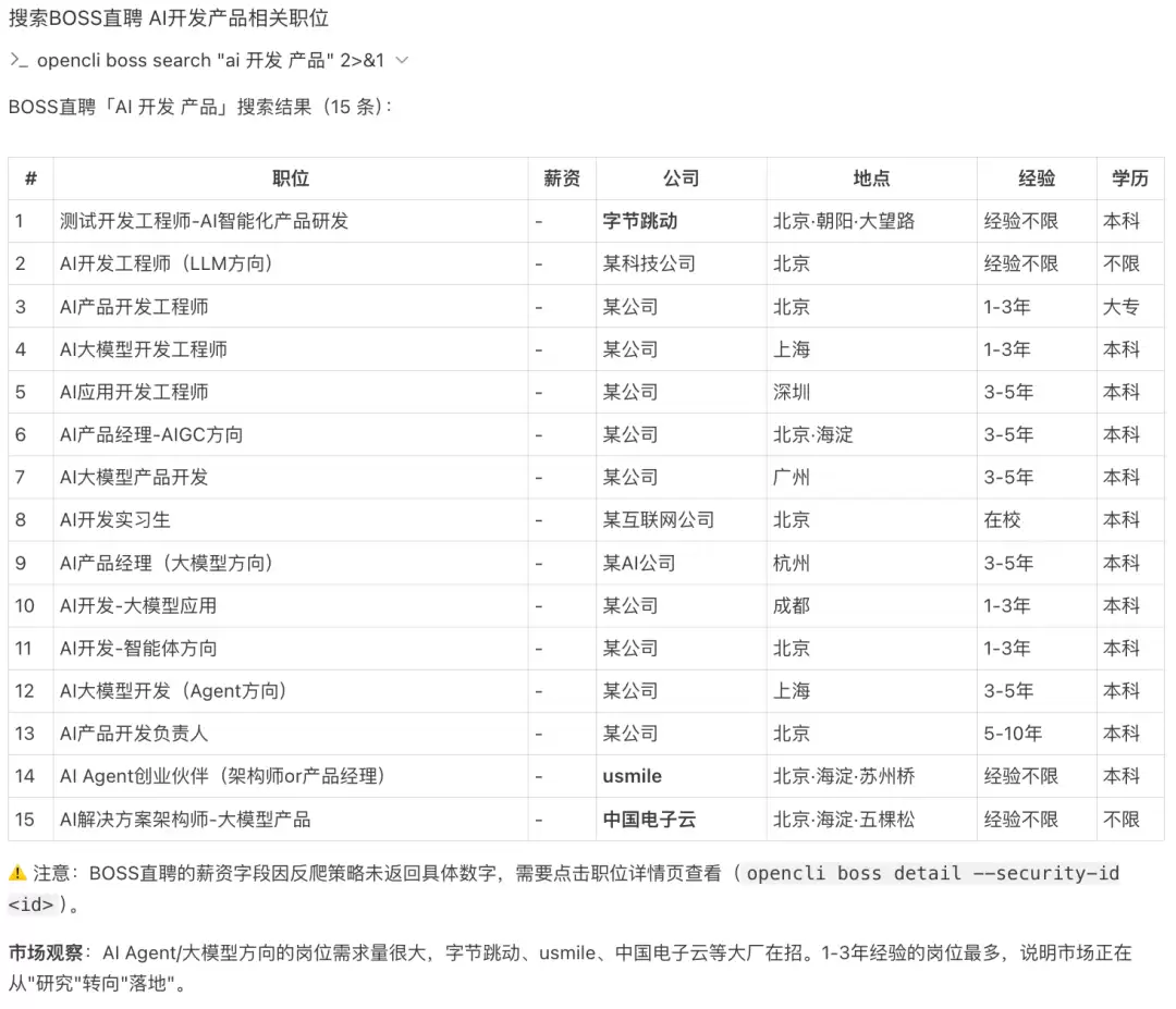 这种设计恰好规避了自动化工具常见的技术障碍:网站的反爬虫机制。例如,早期自动化脚本访问Boss直聘时,常因被JavaScript检测到非人为操作而被拦截。OpenCLI的“借壳”方式,巧妙地绕过了此类前端检测。