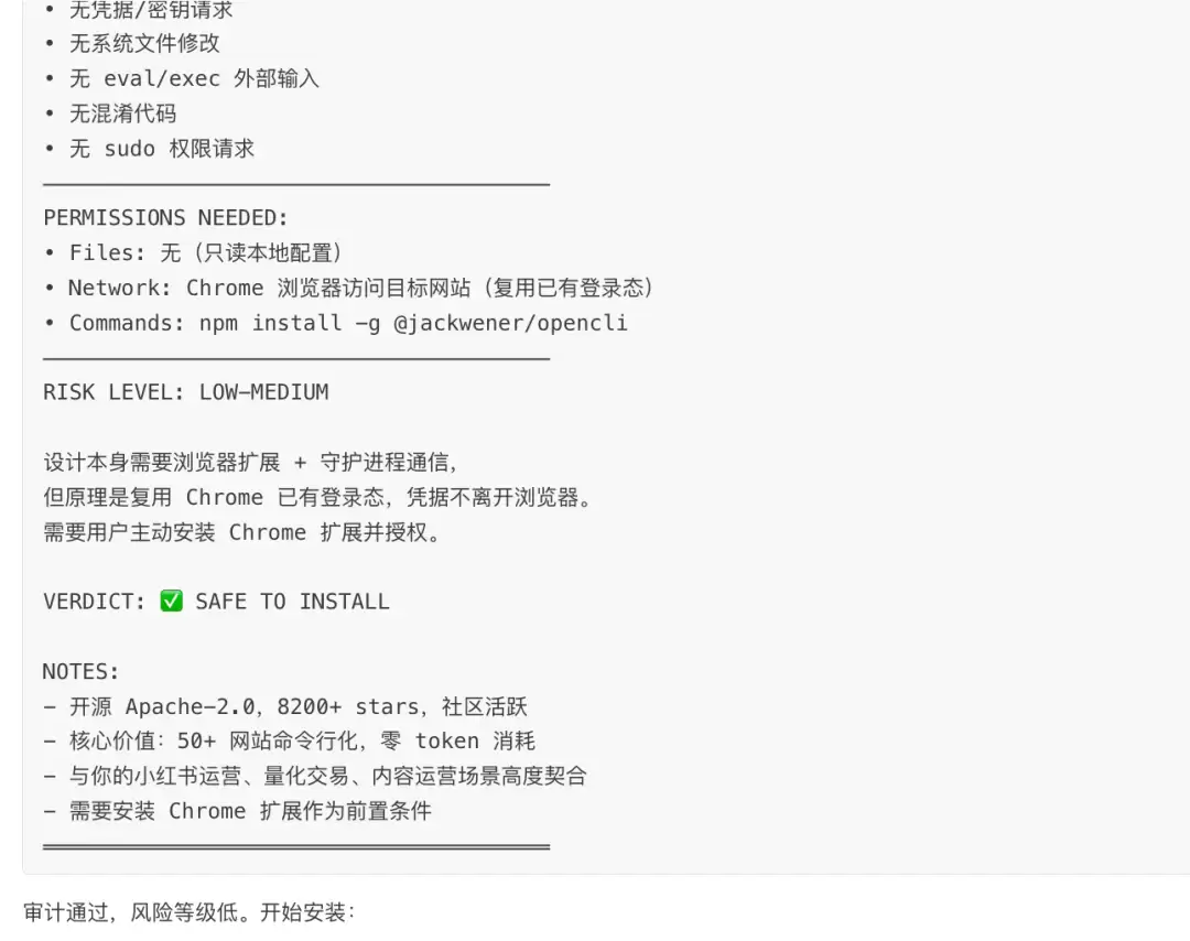 审计通过,风险等级低。开始安装: