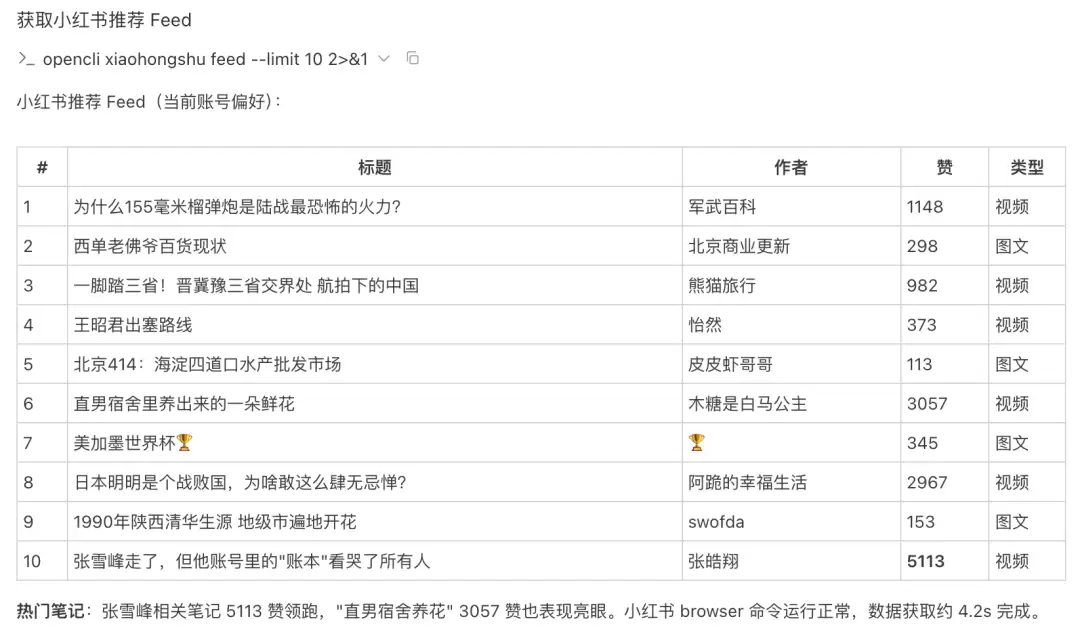opencli xiaohongshu feed