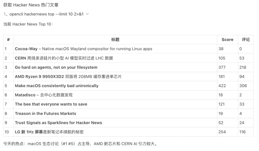 opencli hackernews top
