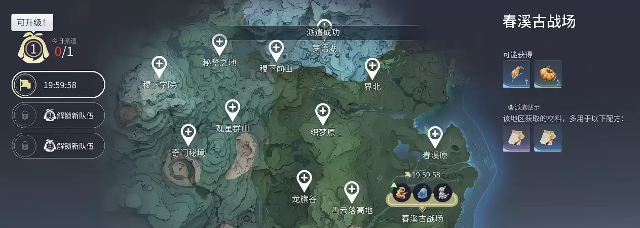 之后就是派遣角色去收集材料了,游戏中建造家园的材料还是比较多的,如果玩家们依靠个人去收集实在是太浪费时间了,所以就有了派遣系统,玩家们可以定期将角色派遣出去,派遣以后就能收集不同类型的材料,后续打造家园也会更加地轻松哦。