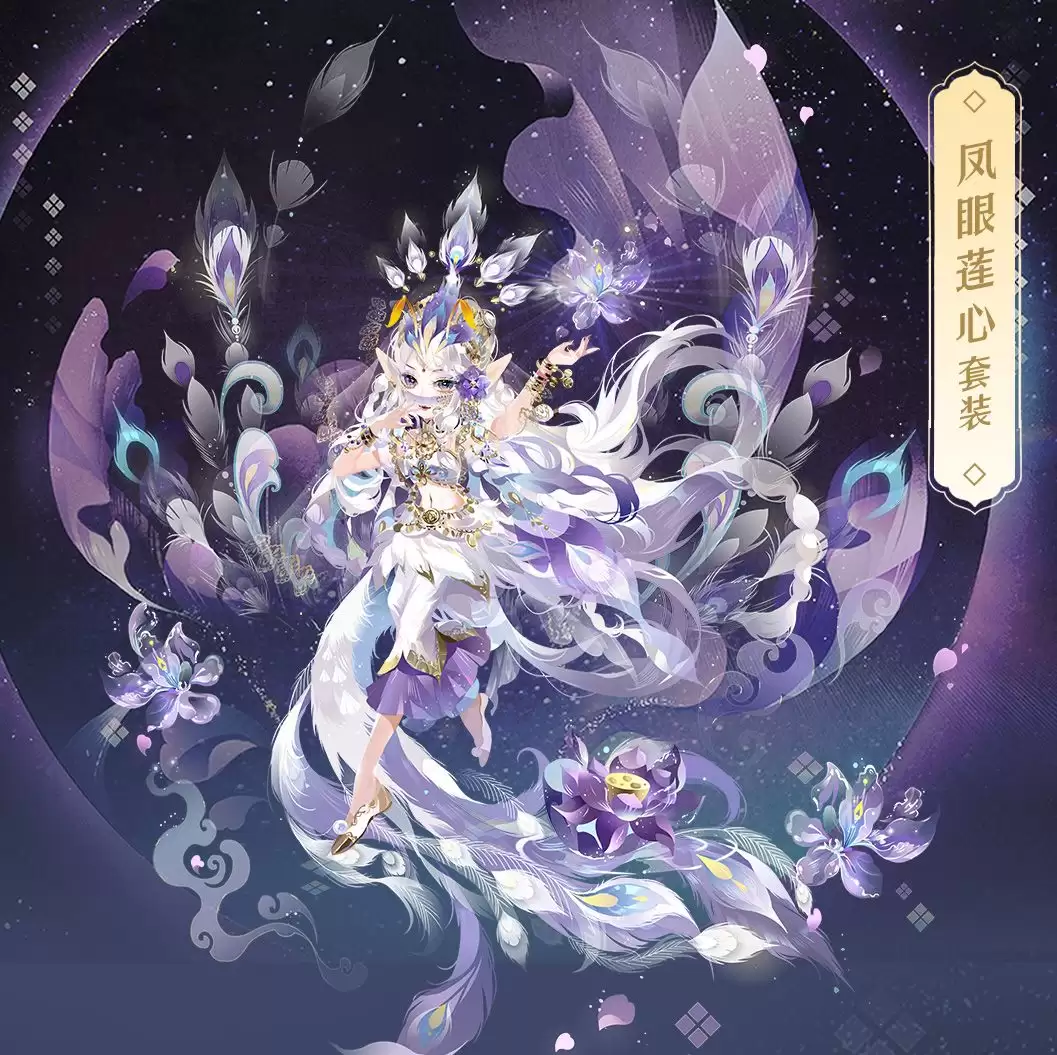 我们首先深入分析「凤眼莲心」套装。这套装扮的核心设计理念源于东方古典美学,强调婉约与空灵的气质。整体色彩方案采用了低饱和度的清雅色调,以莲花形态为设计母题,在剪裁与装饰细节上进行了大量隐喻性处理。