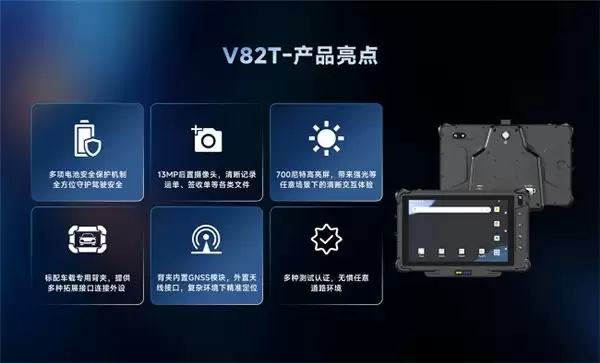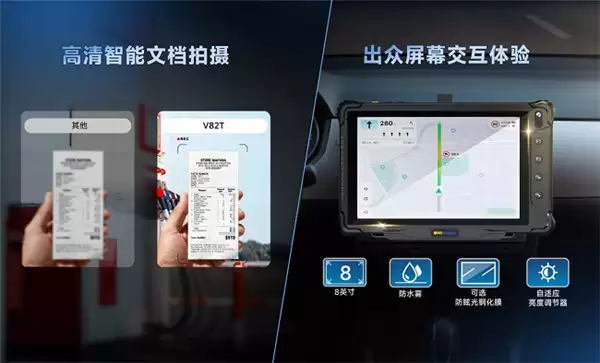V82T 精准定位于物流运输、城配网络、公共交通及工业供应链车队的管理需求。结合专业车队管理软件与车载智能网关,它无缝承接了从任务下发、导航引导、电子签收到车辆监控的全流程人机交互。与通用型工业平板不同,V82T 摒弃了冗余功能,将资源集中投入于屏幕可视性、影像采集、定位精度、通讯质量与电源管理等与出勤效率和数据准确性直接相关的模块,确保每个功能在严苛环境下都能可靠执行。