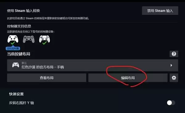 点击后,将进入控制器配置总界面。在此界面中,找到并点击“编辑布局”按键。随后,你的视图会切换至布局编辑器。请将目光聚焦于左侧的配置分类清单,从中准确选择“摇杆”这一项。