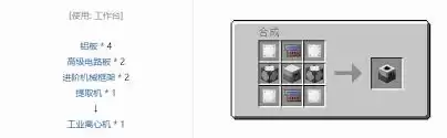 工作台和铁锭能合成压缩机,可压缩物品。熔炉升级后成为高温熔炉,由铁锭、红石和熔炉合成,能处理更高级的冶炼需求。还有研磨机,由铁锭、石头和红石合成,可研磨各种材料。