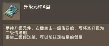 请注意,获取“升级元件A型”是升级过程中的强制性节点,它直接决定了传送舱的等级提升路径。