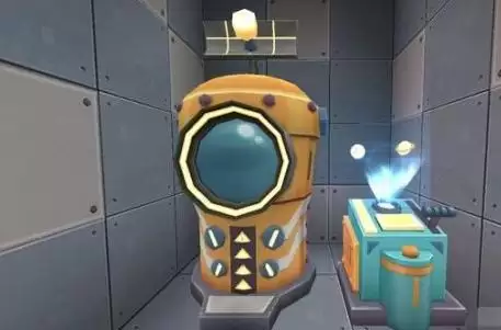 最终,手持“升级元件A型”对一级传送舱进行交互操作,即可瞬间将其升级为容量和效率更高的二级传送舱。