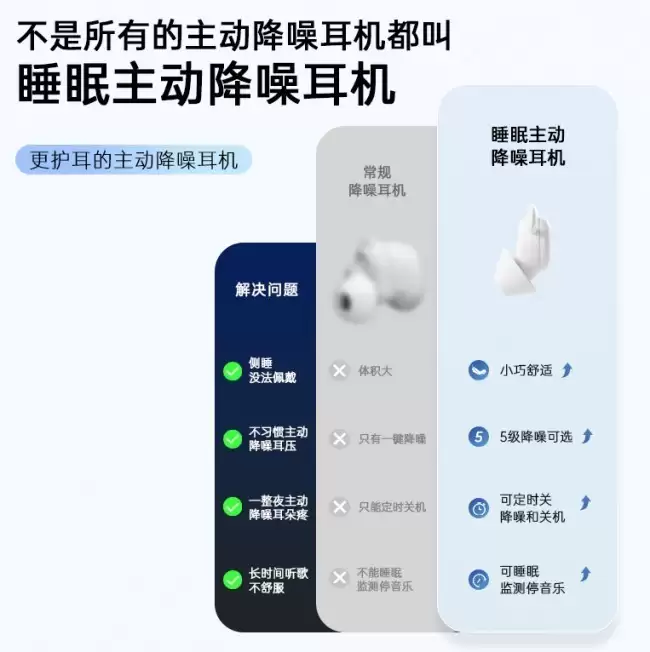 专为睡眠优化的主动降噪耳机,在设计与功能逻辑上与常规产品存在本质区别,主要体现在以下四个方面: