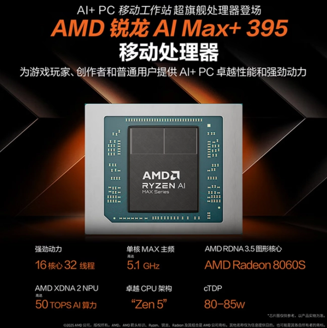 轻薄不等于性能妥协。它搭载 AMD 锐龙 AI Max+ 395 处理器,16核32线程,最高加速频率达 5.1GHz,轻松应对多线程渲染与编译。集成 AMD Radeon 8060S 显卡,具备40组计算单元,为视频编码、3D建模和图形设计提供强劲动力。至高可选 64GB LPDDR5X 8000MT/s 高频内存及 1TB PCIe 4.0 SSD,确保多软件并行与海量素材加载流畅无阻,彻底告别创作中的卡顿与存储焦虑。