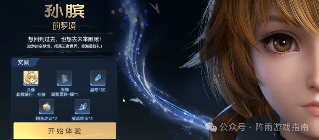 2. 时空奇境互动:在客户端主界面,参与“孙膑的时空奇境”互动。完成趣味任务,即可领取孙膑专属头像、20晶珀及其他养成材料,为你的冒险提供即时补给。