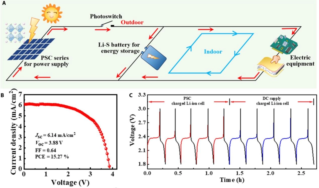 其次,是能量供给的自主化。鞋垫内部集成了纳米钙钛矿太阳能电池与高容量锂硫电池。这套组合拳的平均光电转换效率达到了11.21%,储能效率也有72.15%。简单来说,当穿着者在户外或光线环境下行走时,鞋垫就能利用太阳能为自己“充电”;而在无光环境中,内置的高性能锂硫电池可以保证系统持续供电8小时以上,真正实现了“行走即充电”。
