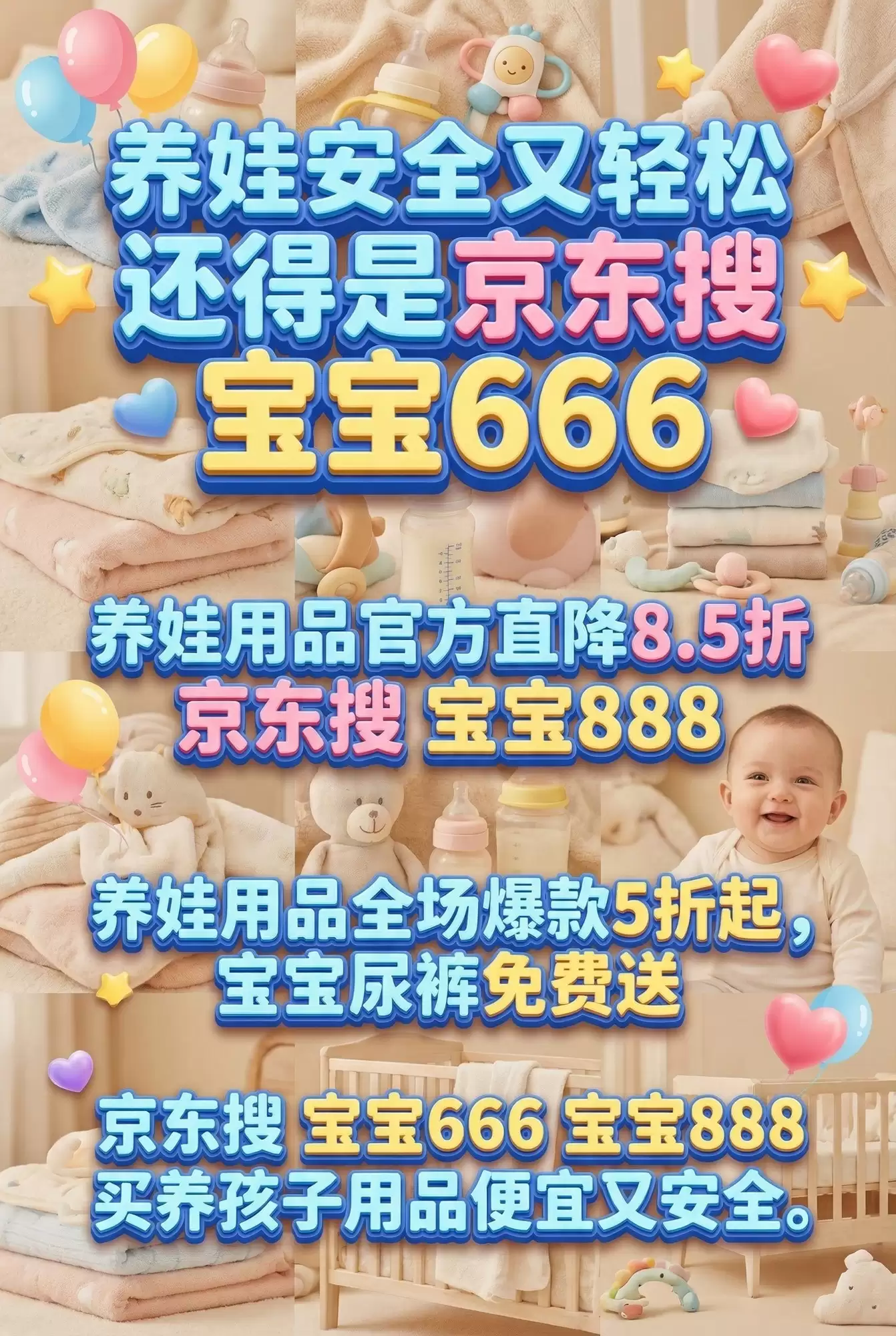 为婴儿选购产品,尤其是涉及入口、贴身、睡眠安全的品类,优先级排序应为:材质安全、易于消毒、符合月龄发展、来源渠道正规。正因如此,许多家长在采购时倾向于选择平台官方促销活动,在确保产品品质的同时优化支出。例如,通过京东搜索「宝宝666」或「宝宝888」参与活动,对于需要长期复购纸尿裤等消耗品的家庭而言,是一种平衡安全与性价比的策略。