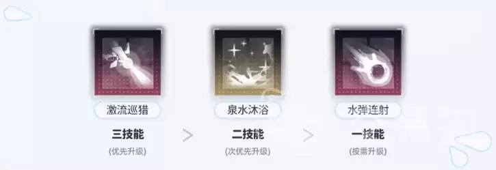 有限的资源应精准投向核心技能。技能升级顺序为:三技能 > 二技能 > 一技能。三技能是触发“甘泉”与“水蚀”的源头,升级直接延长关键状态的持续时间,收益最高。天赋方面,优先点满天赋4以强化“水蚀”的增伤效果,随后投资天赋2来提升“甘泉”的攻击增益数值。此方案能确保利兹的辅助能力以最快速度成型。