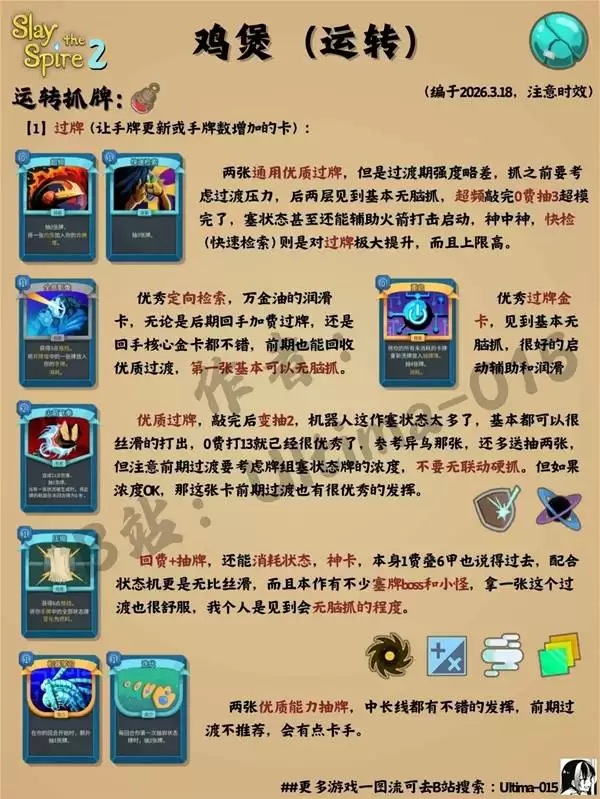 无论何种构筑,一些通用核心组件都至关重要:足够的过牌(“编译冲击”、“超频”)、稳定的“聚焦”来源、以及具备极强战术弹性的“回收”。前期过渡应优先选取“光束射线”、“划痕”等扎实的单卡,并谨慎对待需要配合的高阶卡牌。平稳度过第一、二层商店与首领战,远比强行拼凑未成型的流派更为重要。