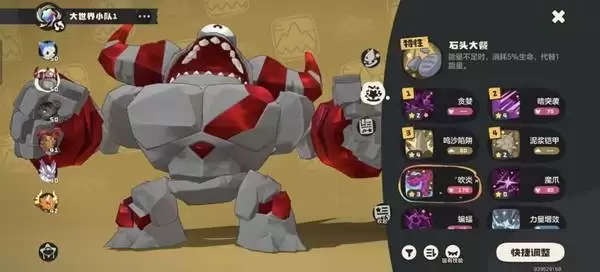 标准操作序列如下:战斗伊始,优先启动【泥浆铠甲】累积物理与魔法防御。紧接着,必须开启【贪婪】以获得100%的吸血效果,这是整个循环的引擎。此后进入状态判断循环:当生命值不满时,使用【鸣沙陷阱】进行攻击并同步吸血回复;若生命值健康,则继续使用【泥浆铠甲】堆叠防御层数。值得注意的是,成功触发防御时,还能为全队属性带来增益,进一步提升整体输出阈值。