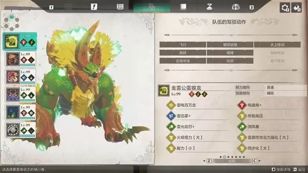 随行兽的搭配是战术核心。主战随行兽优先选用金雷公或其亚种青电主。副手随行兽必须携带溟波龙,并确保其已习得“溟风暴”技能,用于施加关键的雷属性耐性下降状态。
