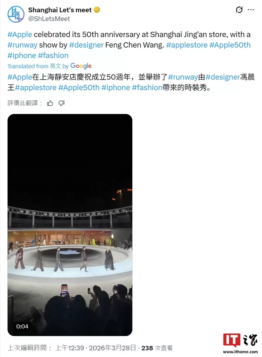 同日,上海静安苹果店巧妙融入了城市文化日程。店内搭建的专业环形T台,呈现了一场正式的时装发布秀。该活动被纳入上海时装周官方议程,实现了品牌庆典与城市时尚艺术活动的双赢联动。
