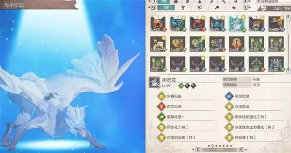 至于关键的技能因子:冰击歌谣是冰人鱼龙自带的,白之吐息出自雪狮子王,至寒吐息是冰呪龙的本命技能,而悲恸吐息则来自冰狼龙。合理规划这些技能的继承路径,搭配上述属性因子,就能打造出一条专属于你的、在后期战场叱咤风云的冰呪龙。